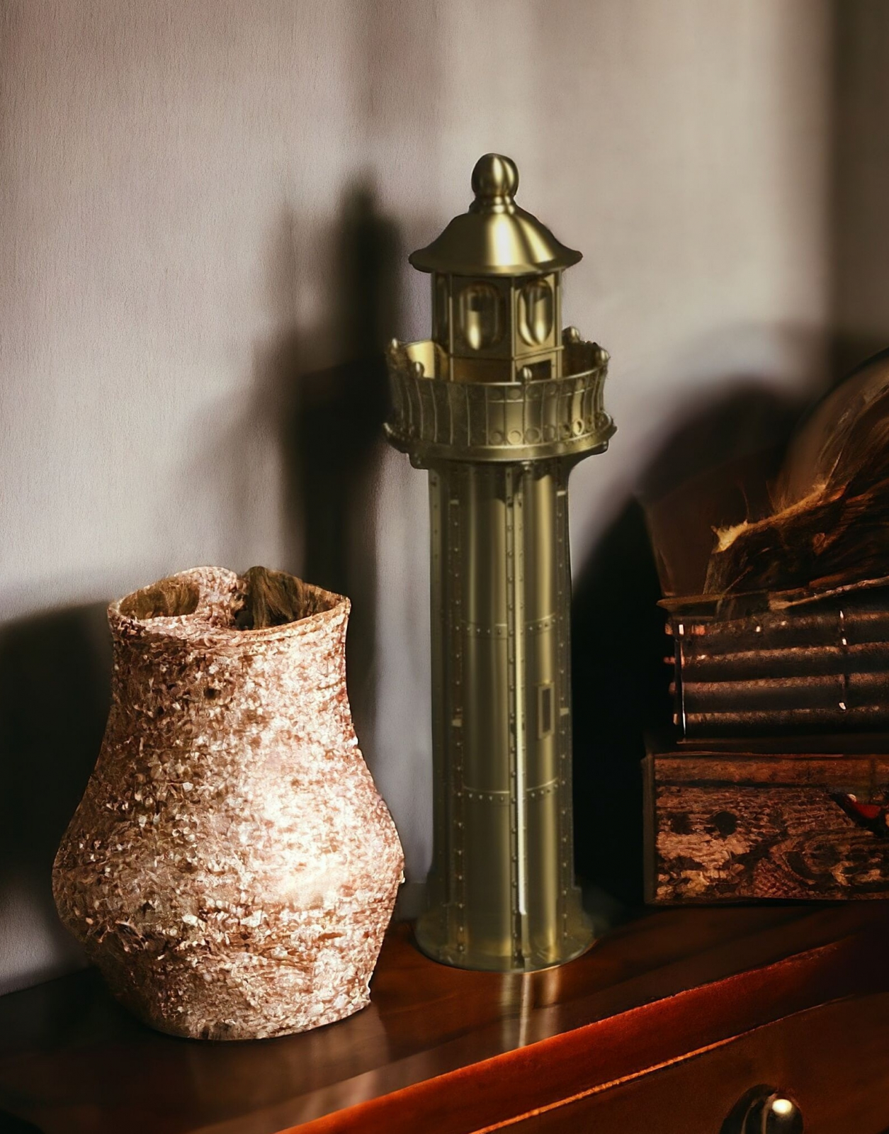 Statuetă culoare bronz auriu, înălțime 170mm, reconstituită după imaginile de arhivă ale FARUL MARITIM VECHI din Mangalia.