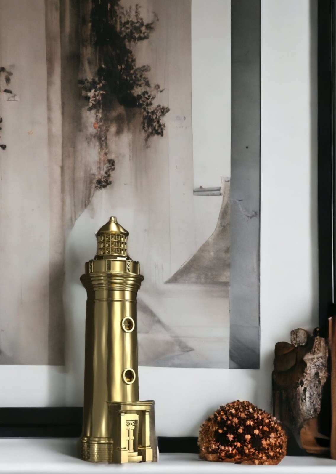 Statuetă,  culoare bronz auriu, înălțime 170mm, reconstruită după Farul Comisiunii Europene a Dunării din Sulina.