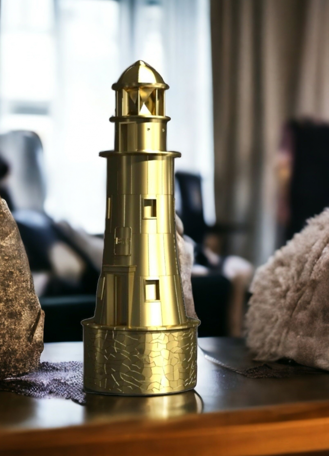 Statuetă, înălțime 170mm, culoare bronz auriu, reconstruită după Farul Vechi din Sulina aflat pe digul de nord al Canalului Sulina.