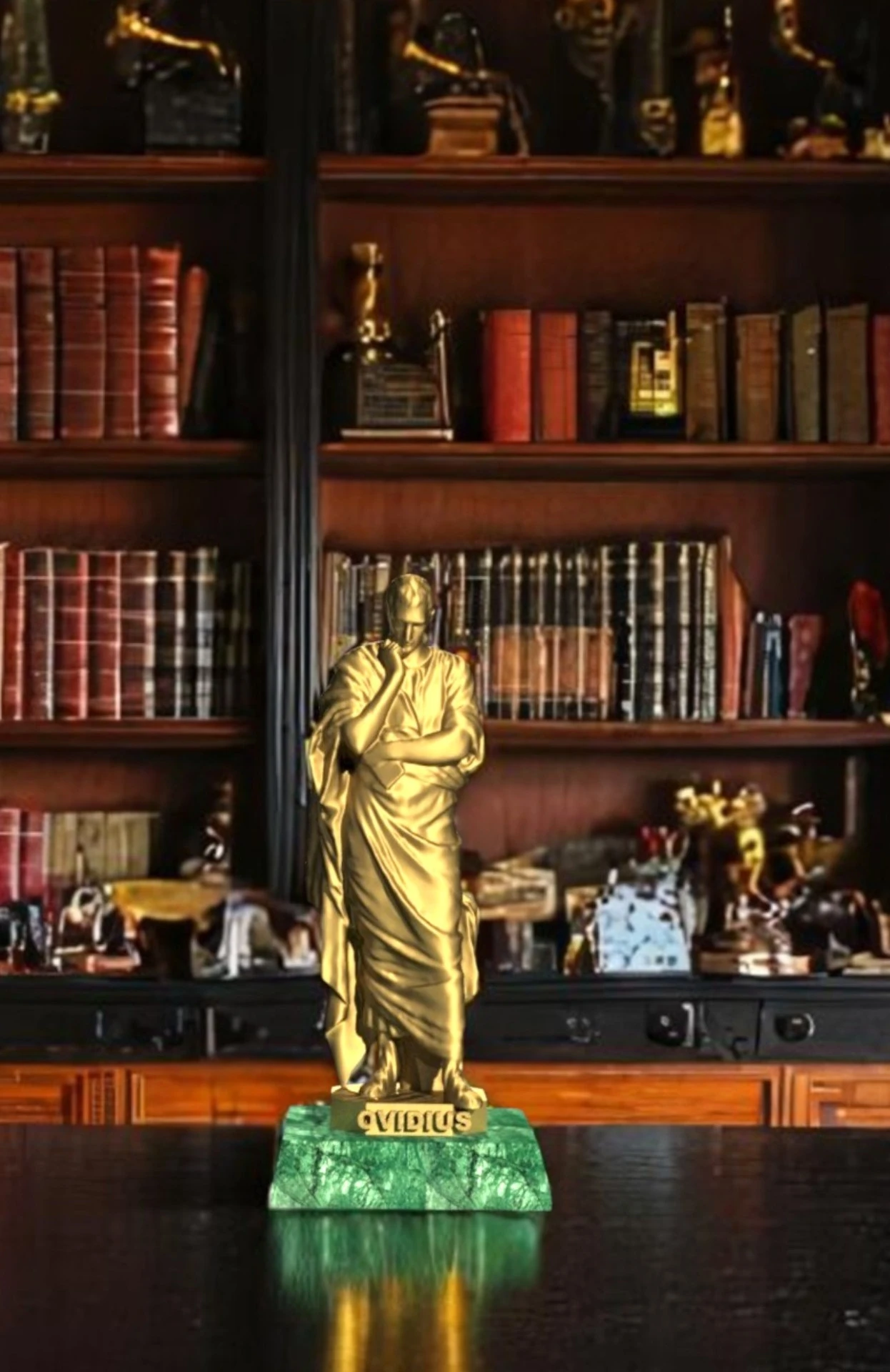 Operă a sculptorului italian Ettore Ferrari statuia din bronz care îl înfățișează pe poetul Ovidiu într-o postură meditativă a fost dezvăluită în august 1887.