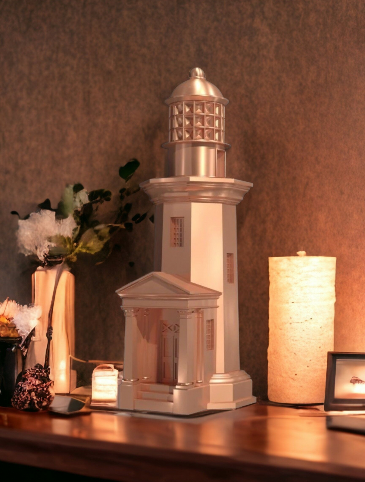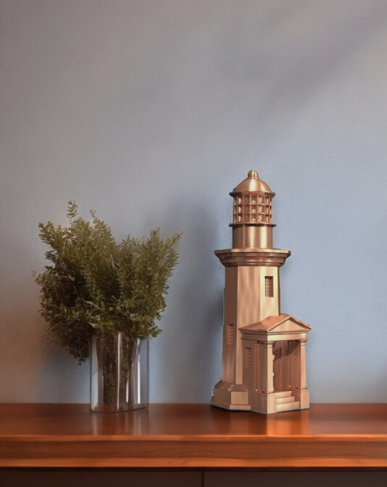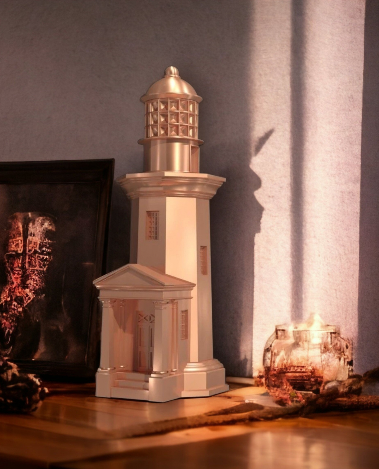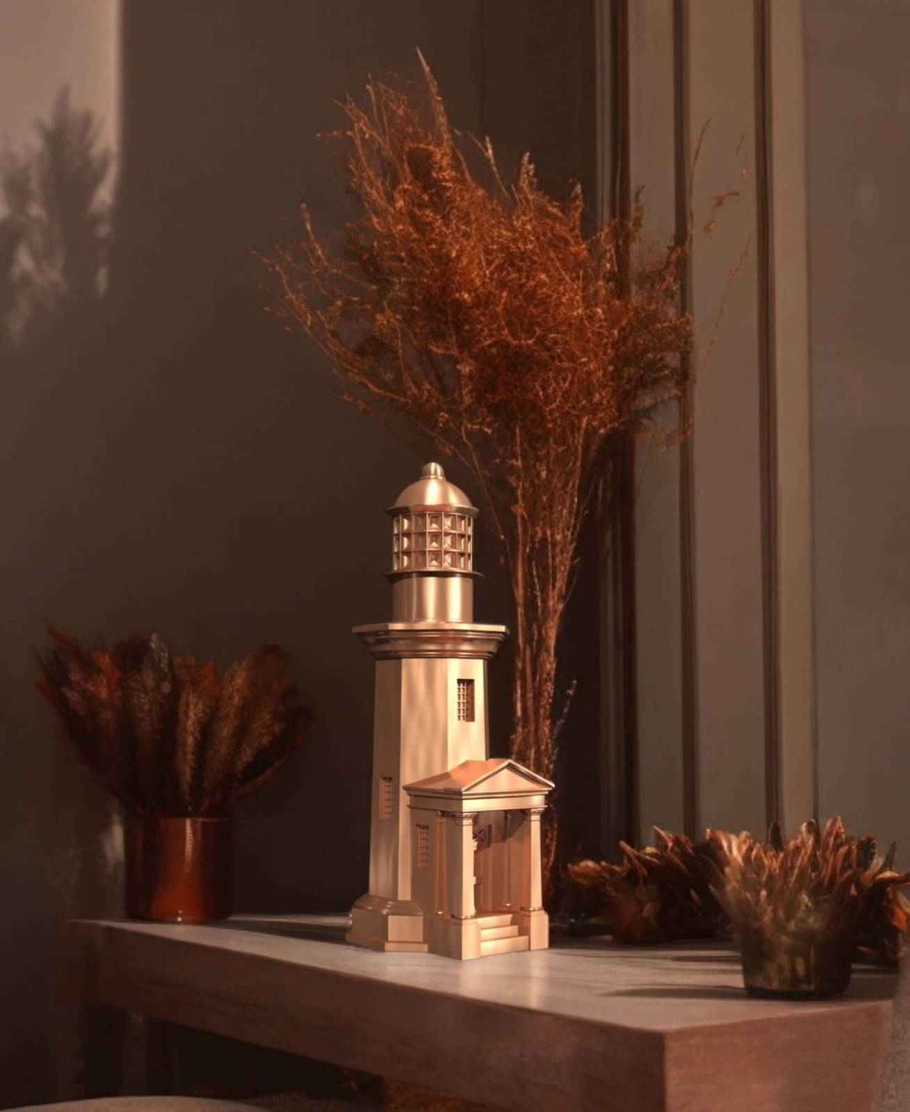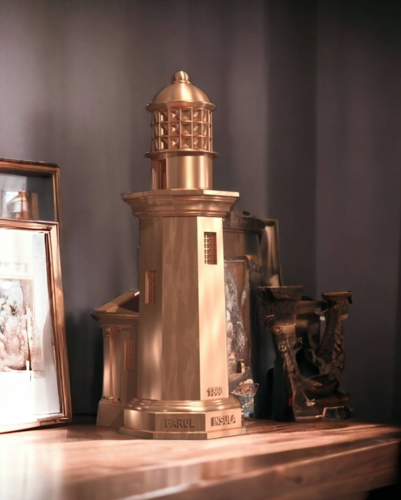Statuetă reconstruită după imaginile de arhivă ale FARULUI din INSULA ȘERPILOR, în prezent distrus de bombardamentele rusești asupra insulei.